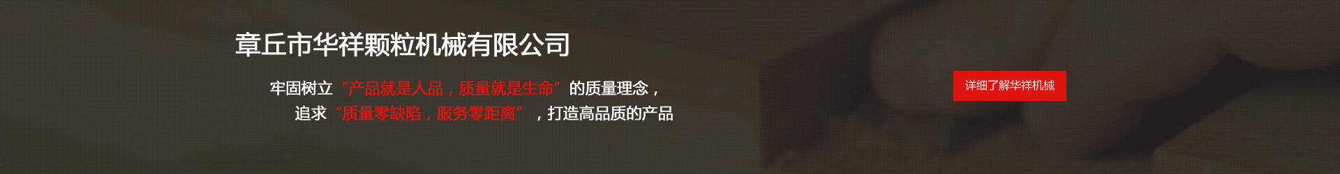 公司成立于1997年,前身為章丘市華祥機械廠(主營:顆粒機,飼料顆粒機,有機肥造粒機,有機肥設備,木屑顆粒機,顆粒生產(chǎn)線等), 公司是集機械制造,成套設備設計,安裝于一體的現(xiàn)代企業(yè),由鑄造、機械加工、合成組裝、設計開發(fā)、網(wǎng)絡營銷五個聯(lián)合單位構(gòu)成。主要生產(chǎn)飼料加工機械,生物質(zhì)燃料機械,有機肥生產(chǎn)設備三大系列產(chǎn)品。 華祥機械牢固樹立“產(chǎn)品就是人品,質(zhì)量就是生命”的質(zhì)量理念,追求“質(zhì)量零缺陷,服務零距離”,打造高品質(zhì)的產(chǎn)品。 精心的設計、精湛的制造、精細的施工、全方位的服務,以及華祥人長期秉持“讓我們共同前進”的理念,使華祥贏得了良好的社會信譽,產(chǎn)品遠銷意大利、越南、緬甸、澳大利亞等全球多個國家和地區(qū),產(chǎn)品質(zhì)量和信譽得到了廣大用戶的認可。 未來,華祥人將繼續(xù)大力發(fā)揚"誠信、創(chuàng)新、協(xié)作、效率"的企業(yè)精神,堅持技術(shù)、產(chǎn)品、管理、服務創(chuàng)新,大力推進產(chǎn)品精品化和市場國際化,全力打造“華祥”機械品牌形象。想客戶所想,為客戶創(chuàng)造價值,協(xié)助客戶的事業(yè)獲得成功;"華祥"人充滿信心,滿懷希望,真誠期待與您共贏。